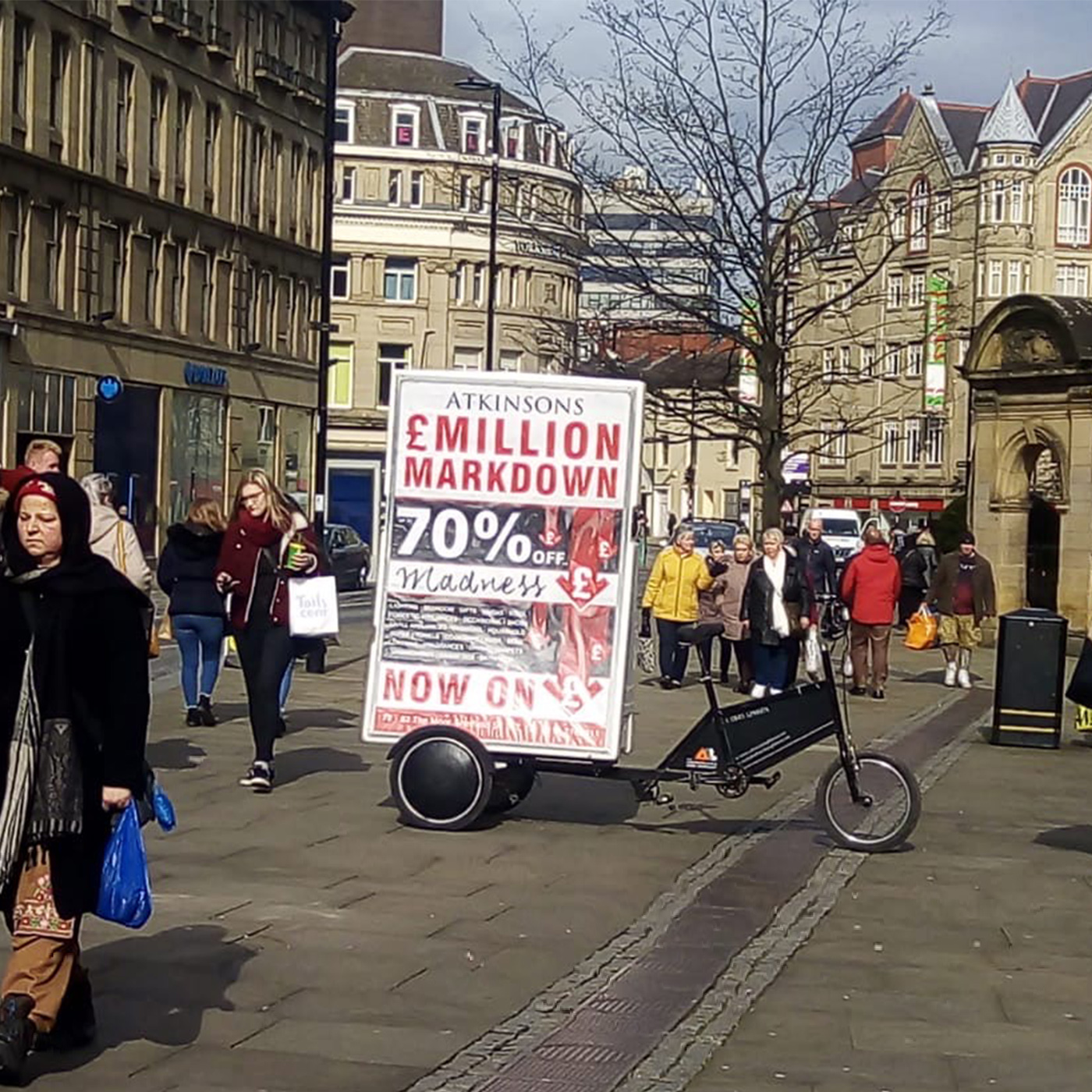 By injecting a dose of pedal power into your next advertising campaign, you’re committing to a fun, high-impact and compelling way to effectively reach your target audience. We can immerse our AdBikes into a range of different day-to-day environments and high-frequency locations to target the hotspots other traditional platforms can only dream of.